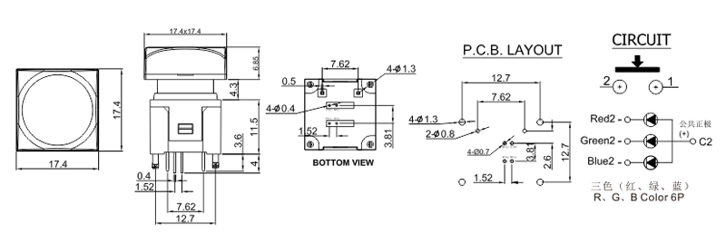 帶燈按鈕開關,LED燈有單燈,雙燈以及RGB全彩,按鍵尺寸有多種規(guī)格,可根據(jù)各大需求任意定制各種絲印,這類按鍵常用于廣播控制臺,視頻音頻處理器等。