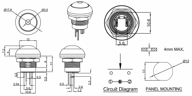 防水按鍵開關(guān)PB12-2-M-RG-G
