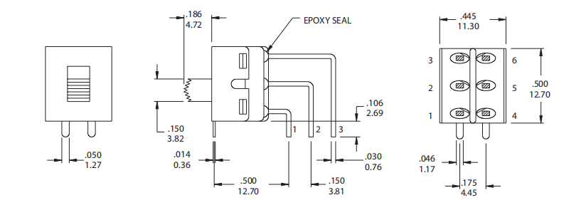 ??????Contact Rating: 6A120VAC or 28 VDC; 0.4VA max@ 20VAC OR DC max.